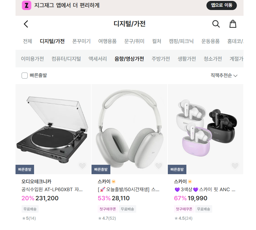 - 선호도 1위: 블루투스 이어폰 및 헤드폰
