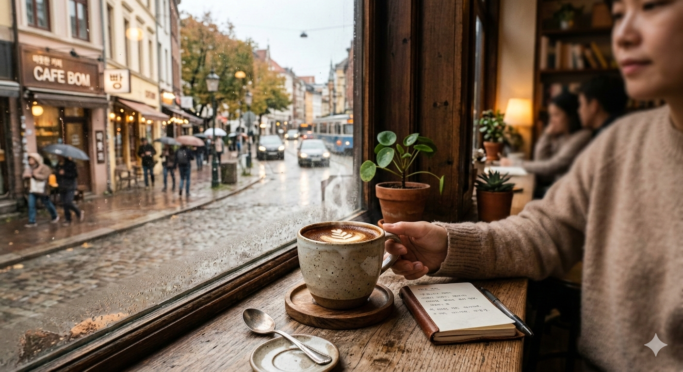 제미나이 나노바나나2 생성이미지  “카페 창가에 놓인 따뜻한 커피 한 잔”