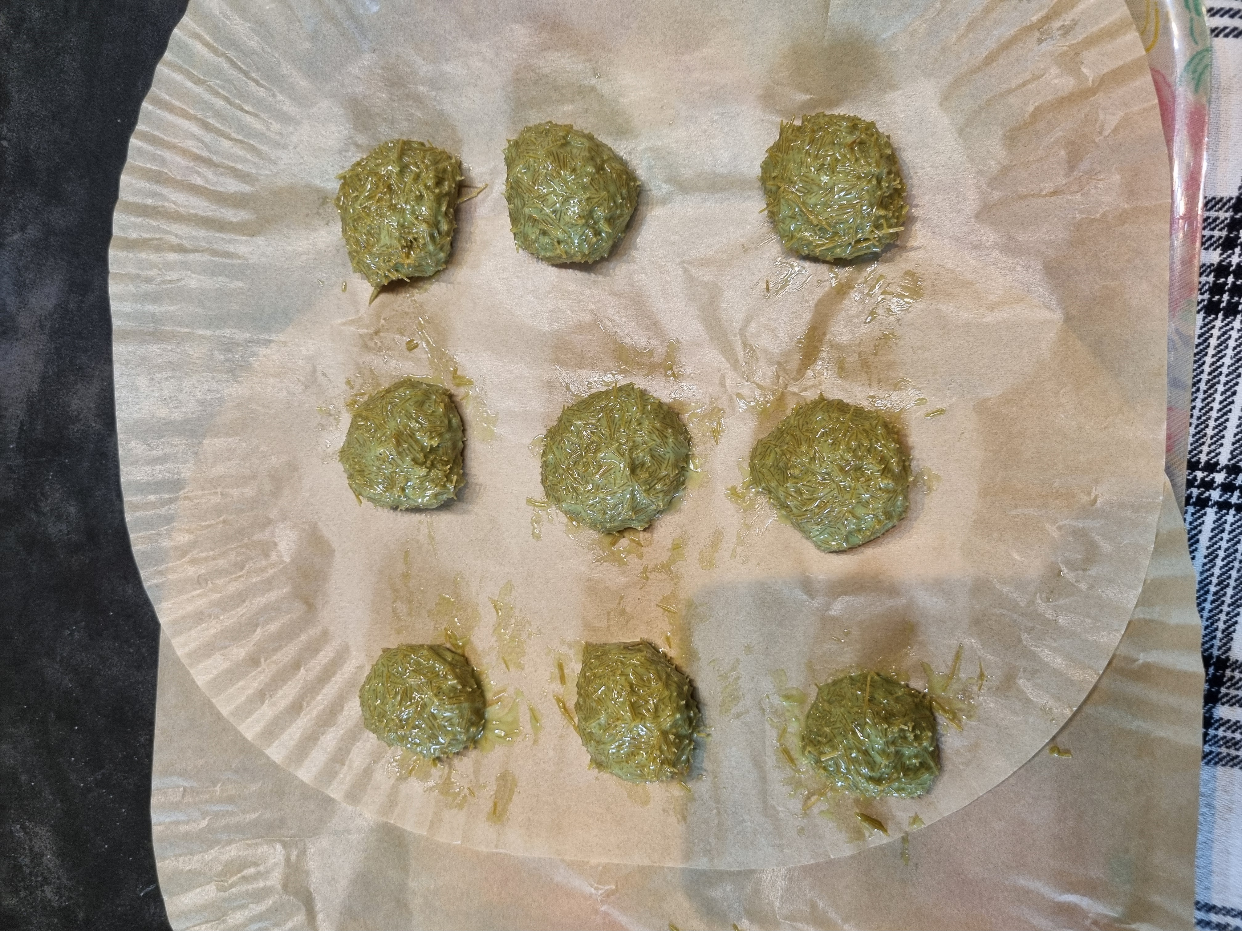 - 재료: 버터 3조각, 마시멜로 300 , 코코아가루 20g, 피스타치오 스프레드 300g , 볶은 카다이프면 200g
