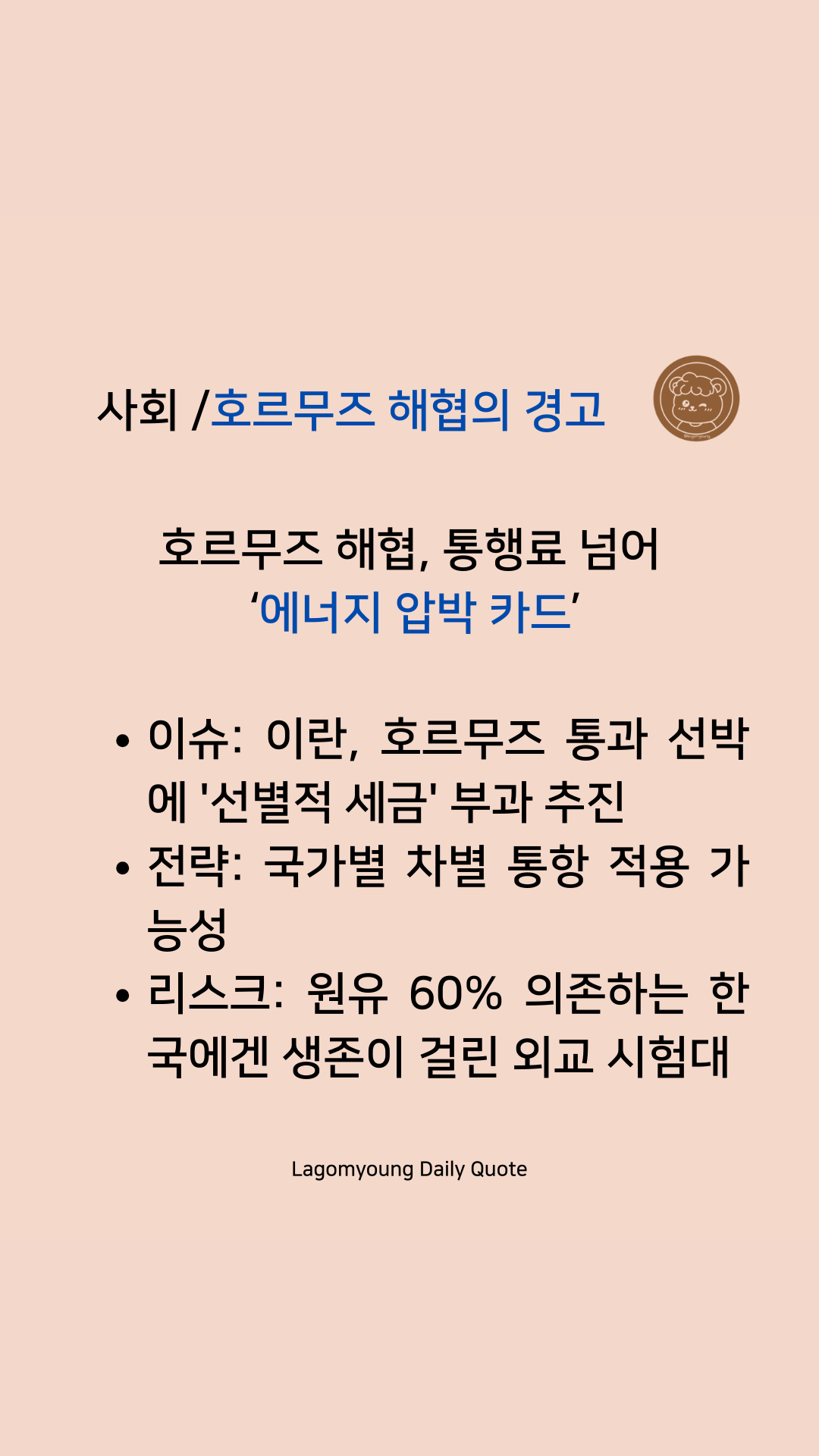 안녕하세요, 복잡한 세상의 뉴스를 라곰영만의 시선으로 깊이 있게 분석해 드리는 라곰영입니다.
