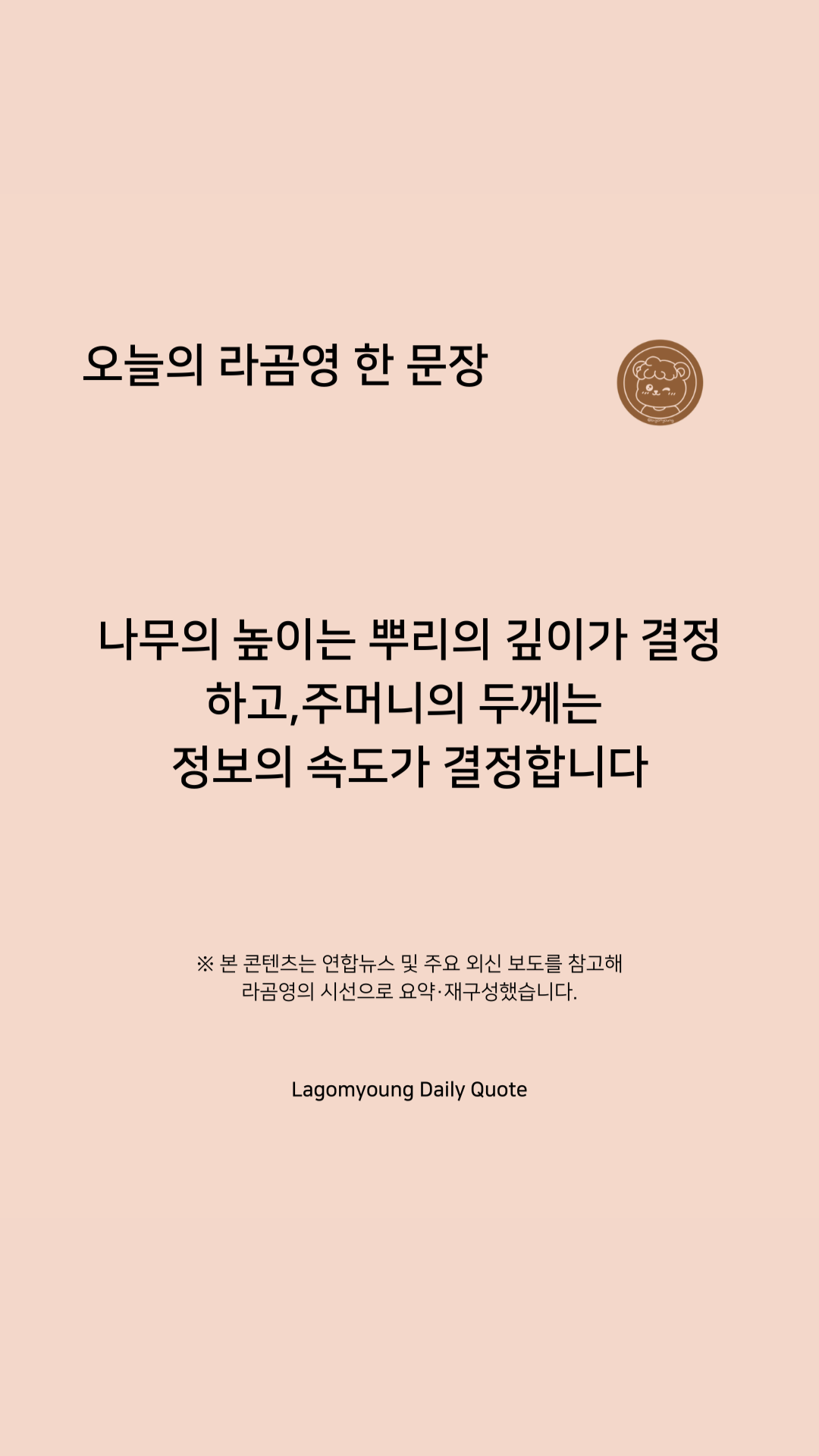 나무의 높이는 뿌리의 깊이가 결정하고, 주머니의 두께는 정보의 속도가 결정합니다.