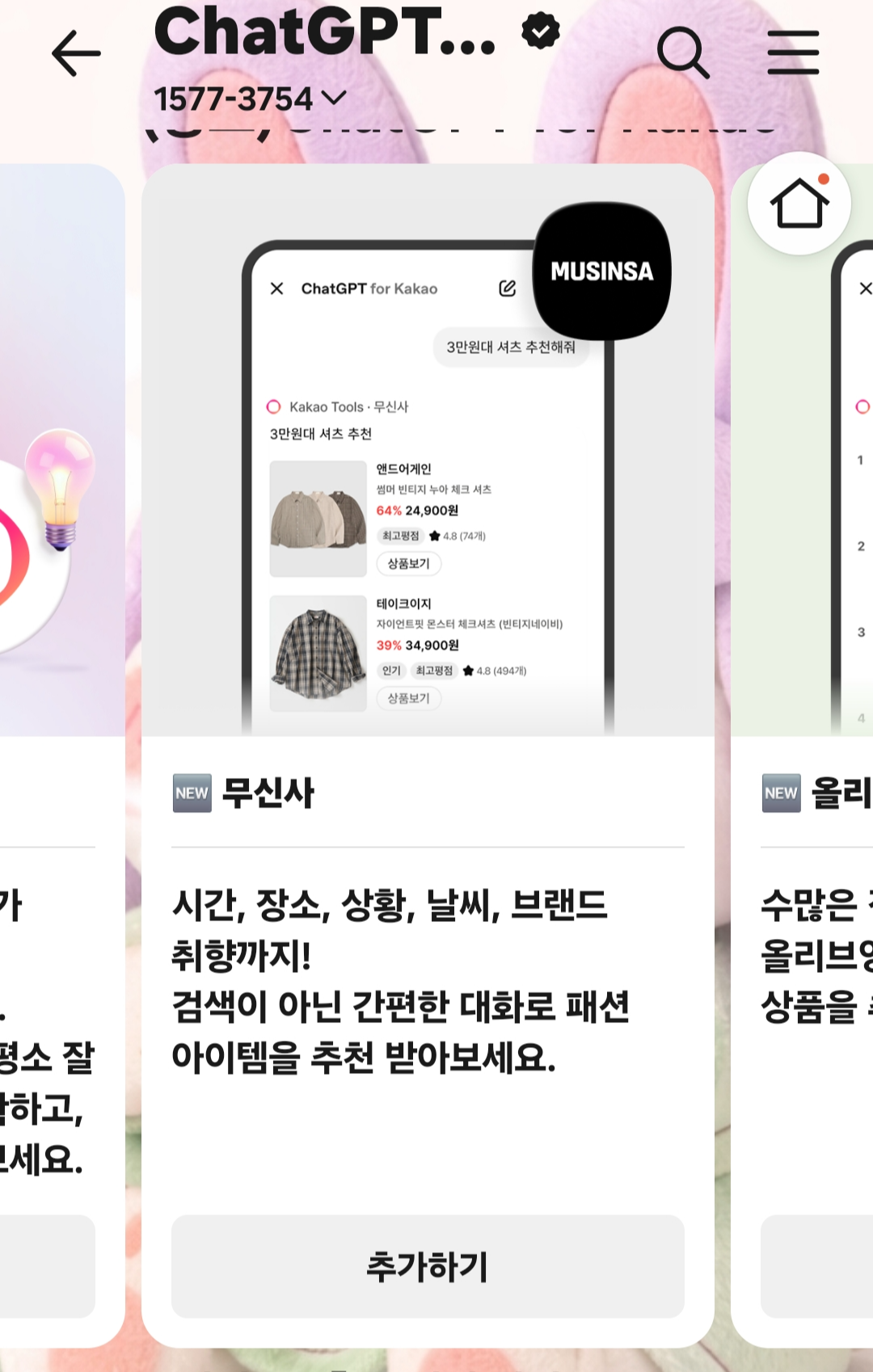 이번 업데이트의 가장 큰 놀라움은 '외부 서비스와의 대통합'입니다. 이제 'ChatGPT for Kakao' 채팅창 안에서 질문만 하는 게 아니라, 실제 우리가 매일 쓰는 앱들의 서비스를 즉시 실행할 수 있게 되었습니다.