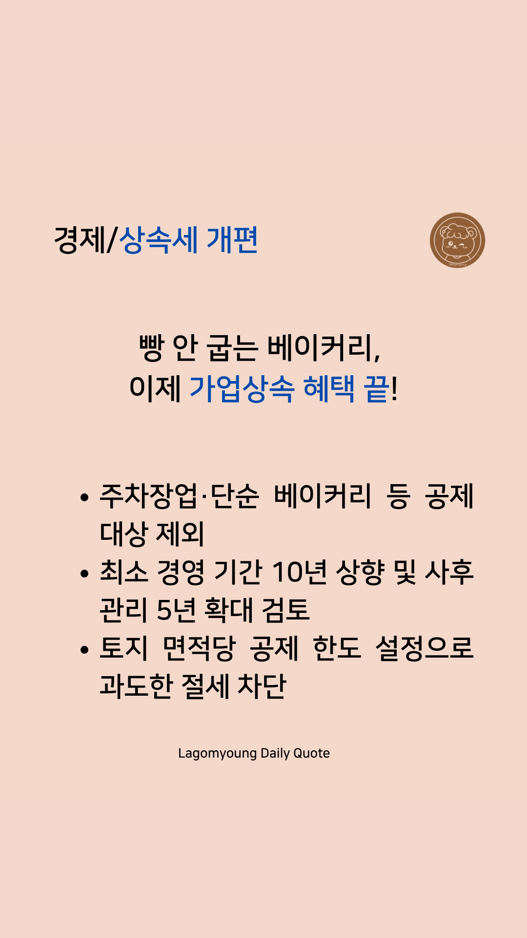 • 뉴스 배경: 그동안 '가업 승계'라는 이름 아래 부동산 가치 상승을 노린 주차장업이나, 직접 빵을 굽지 않고 완제품을 떼어다 파는 대형 베이커리 카페들이 과도한 세제 혜택을 받는다는 지적이 끊이지 않았습니다. (실제 수도권 대형 카페 중 상당수가 제조 공정 없이 공제 혜택을 시도한 정황 포착)