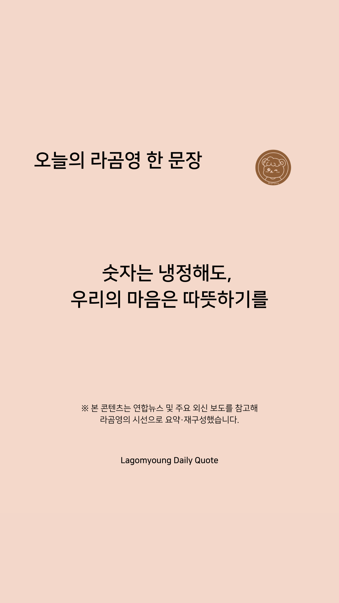 오늘도 여러분의 일상이 너무 과하지도, 부족하지도 않은 '라곰(Lagom)'한 상태이길 바랍니다.