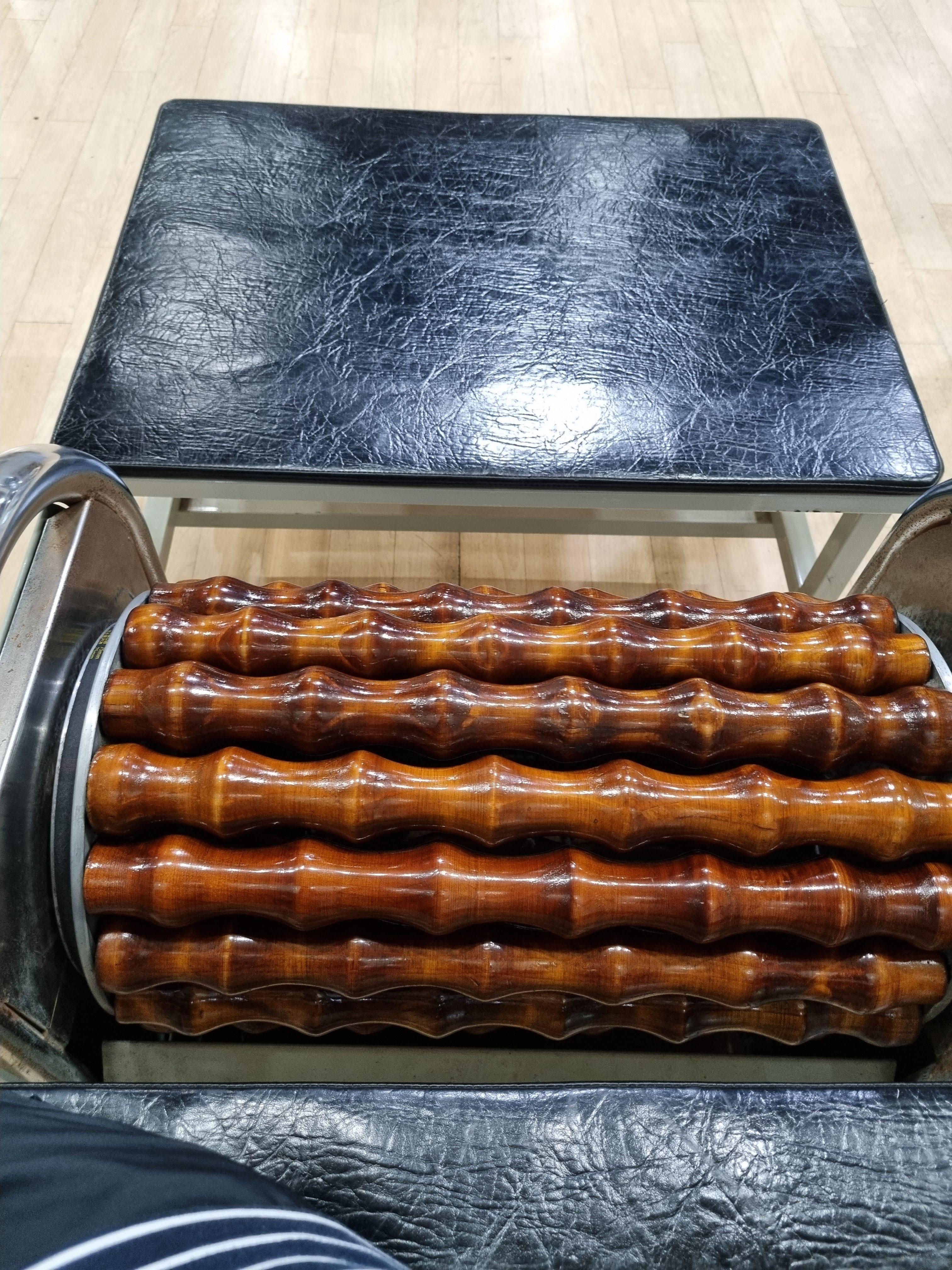 **종아리 근육을 풀기 위한 ‘돌돌이 마사지’**를 해요.