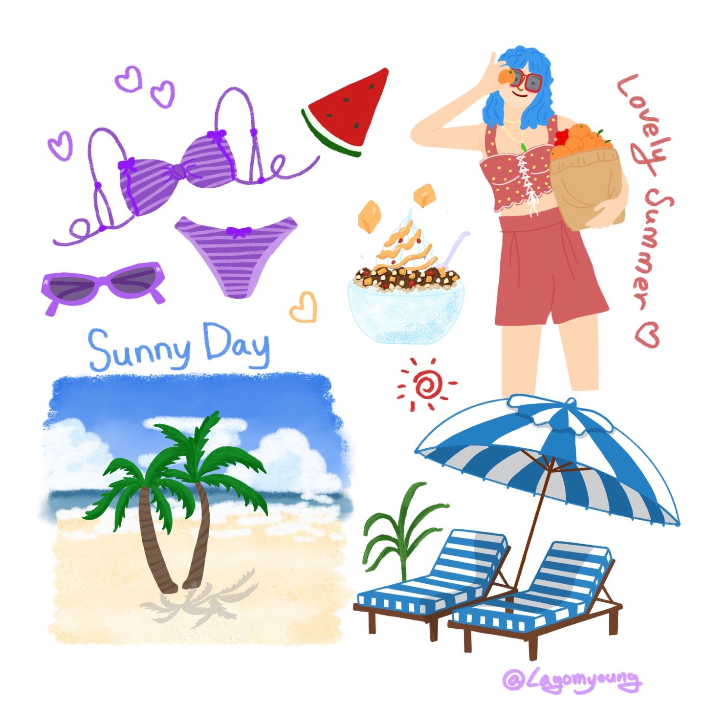 한 주 동안 여름을 대표하는 아이템들을 하나하나 그려보고,