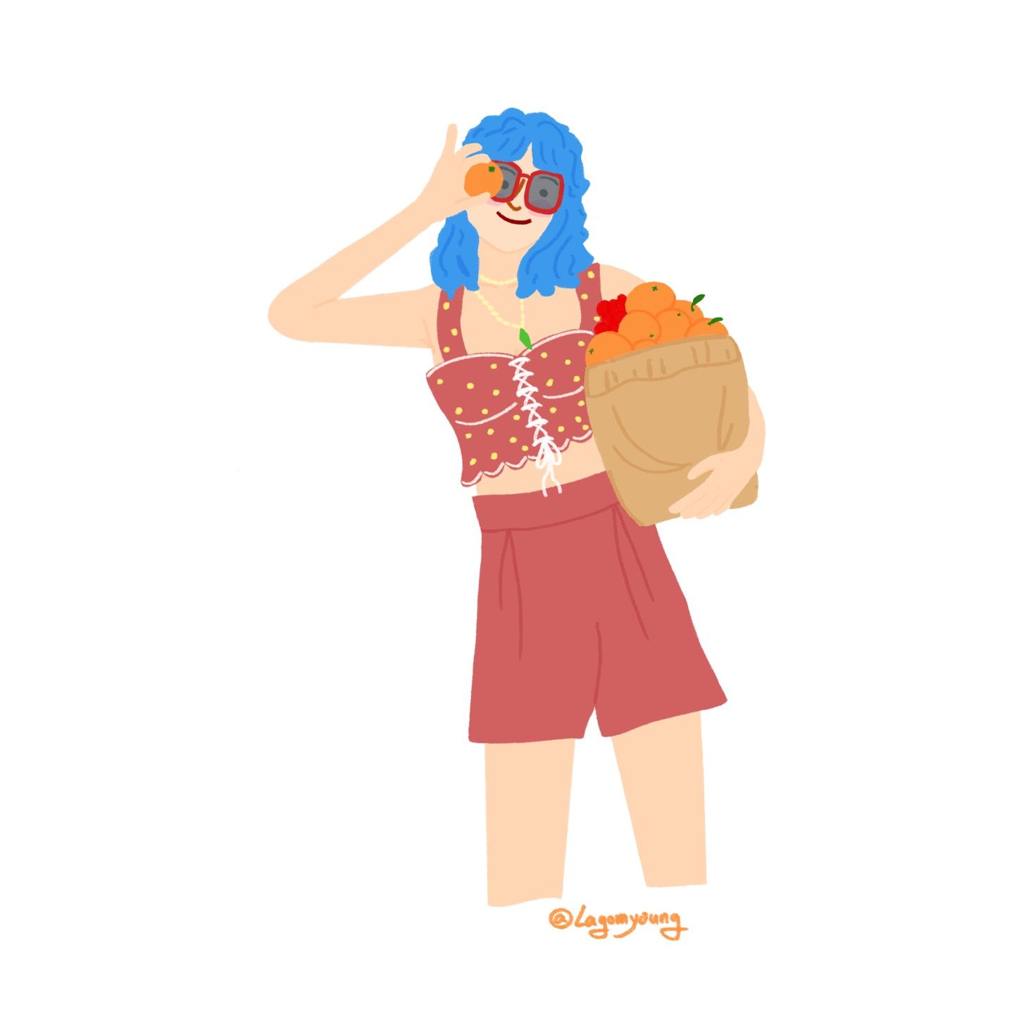 여름 과일을 든 소녀