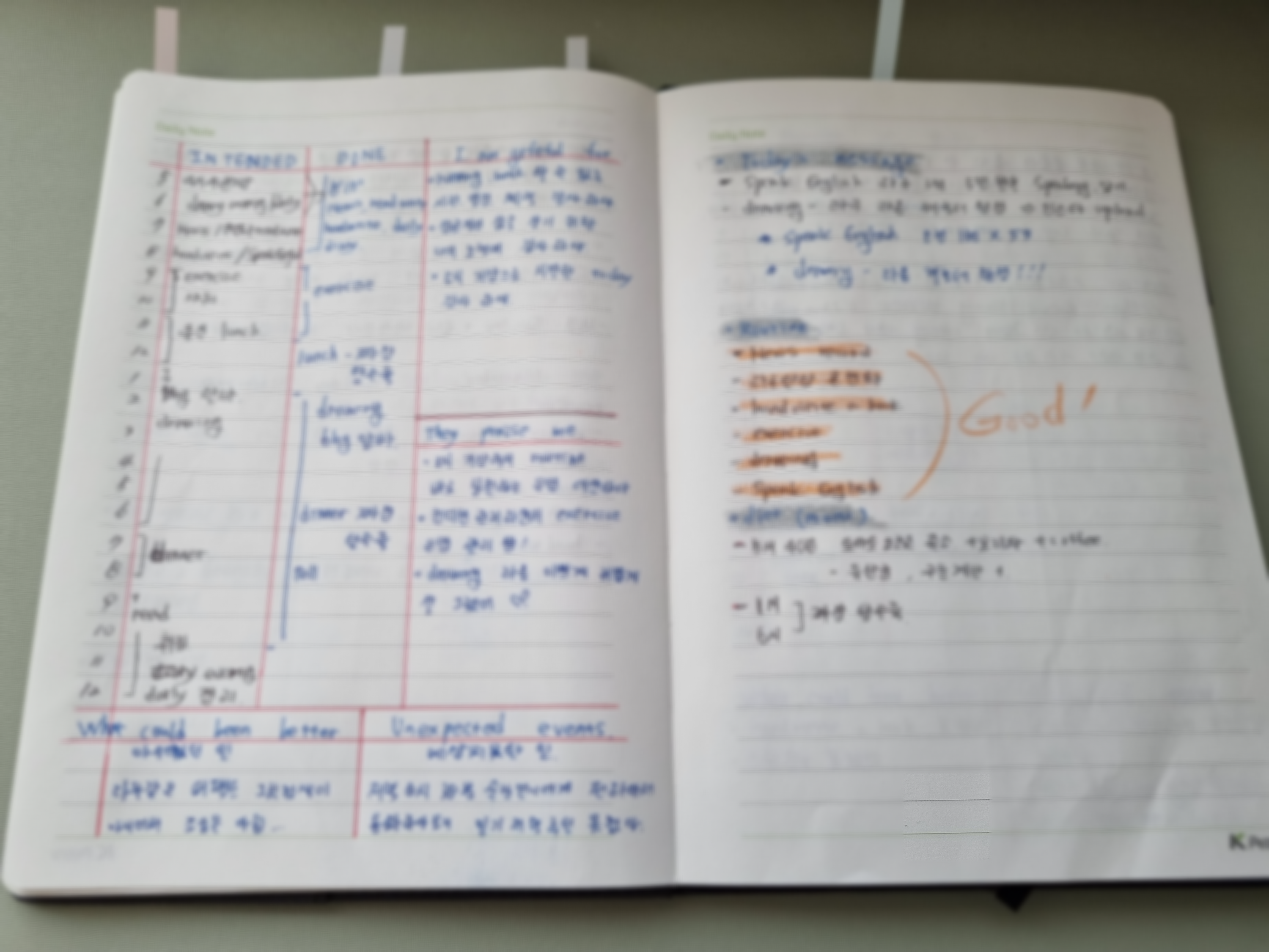 운동 / 영어 / 독서 / 다이어리 / 정리 루틴 중 1개만